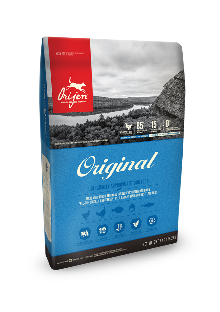 ORIJEN zawiera 38% odżywczego białka i ograniczoną ilość węglowodanów do 19%, dzięki czemu odżywia psy zgodnie z ich biologicznymi potrzebami.