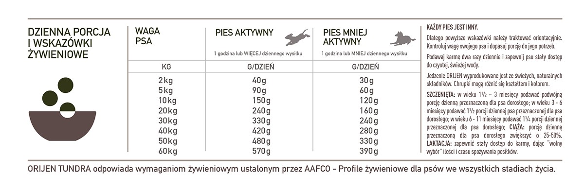 Dawkowanie karmy Orijen Tundra