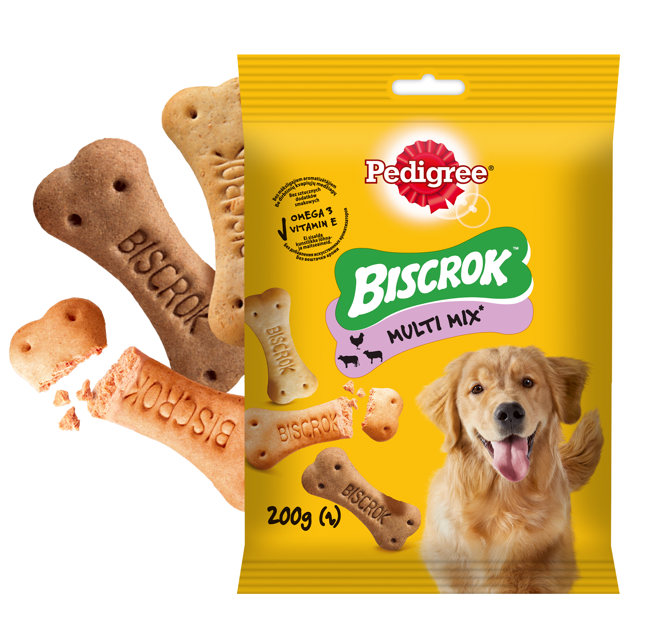 Pedigree Biscrok Ciasteczka Dla Dorosłych Psów W Kształcie Kostek Z Jagnięciną, Kurczakiem I Wołowiną 200g – Opis Produktu