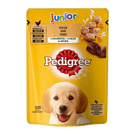 PEDIGREE® Junior z Kurczakiem i Ryżem to jedzenie, które zostało opracowane z myślą o zaspokojeniu najważniejszych potrzeb młodych psów: wspiera naturalnie silne mechanizmy obronne, ułatwia zachowanie zdrowej skóry i sierści, wspomaga trawienie, a także pomaga oczyszczać zęby czworonoga. Z PEDIGREE® Junior dostarczasz kompletne i zbilansowane pożywienie, które pomoże pupilom wyrosnąć na zdrowe i silne psy. Nie zawiera sztucznych barwników, konserwantów i aromatów (dodatków smakowych). Pokarm został opracowany przez specjalistów ds. żywienia i lekarzy weterynarii w Centrum Żywienia Zwierząt WALTHAMTM.