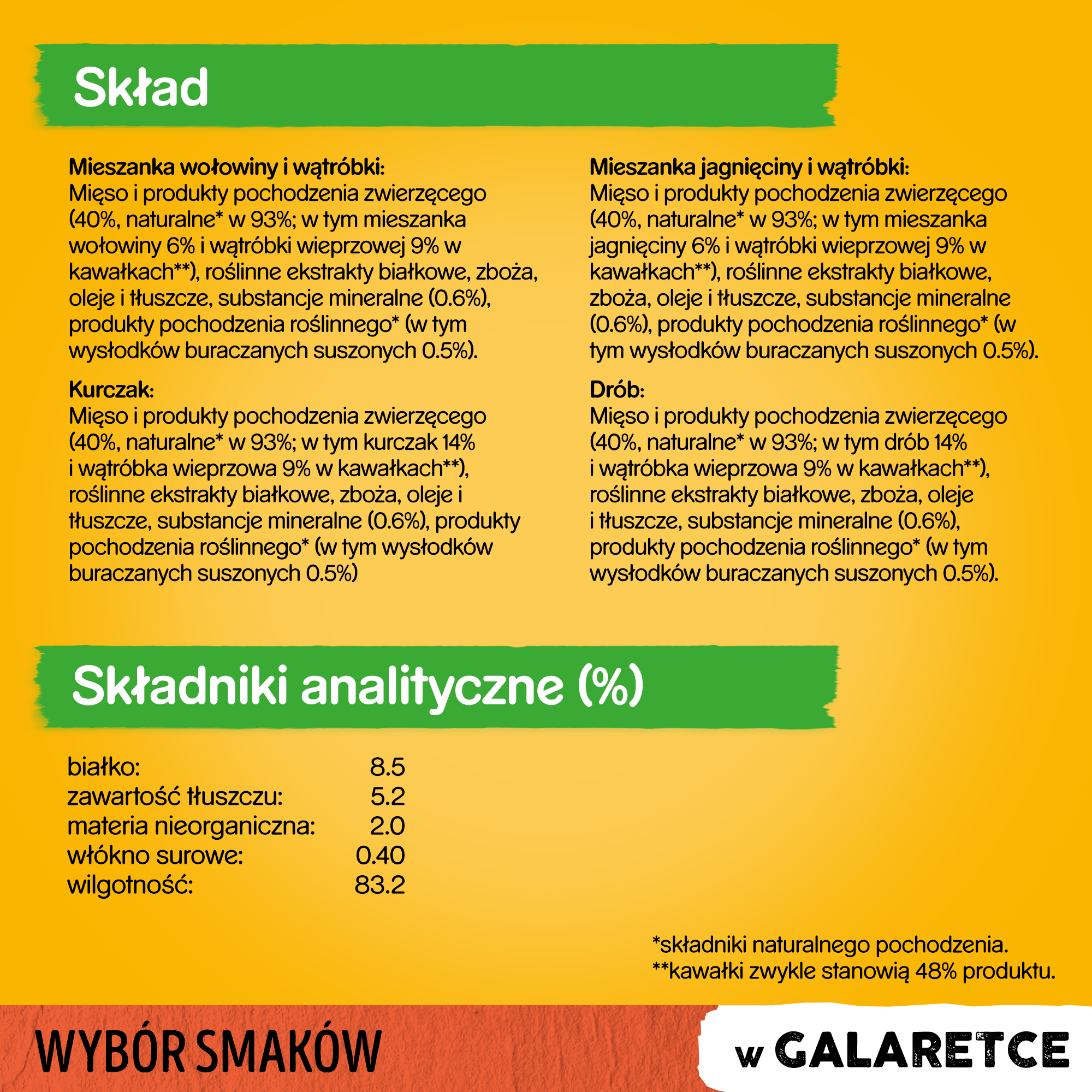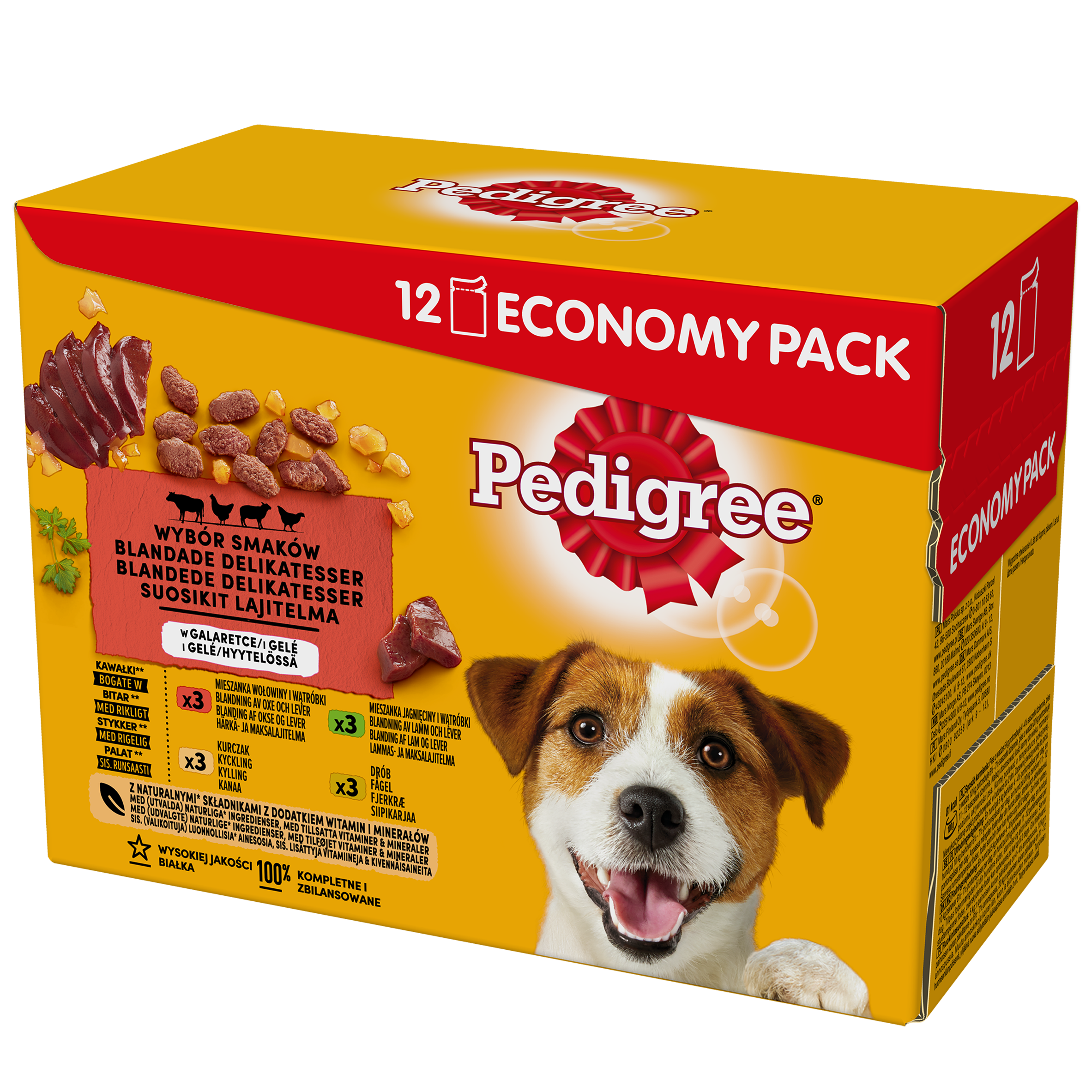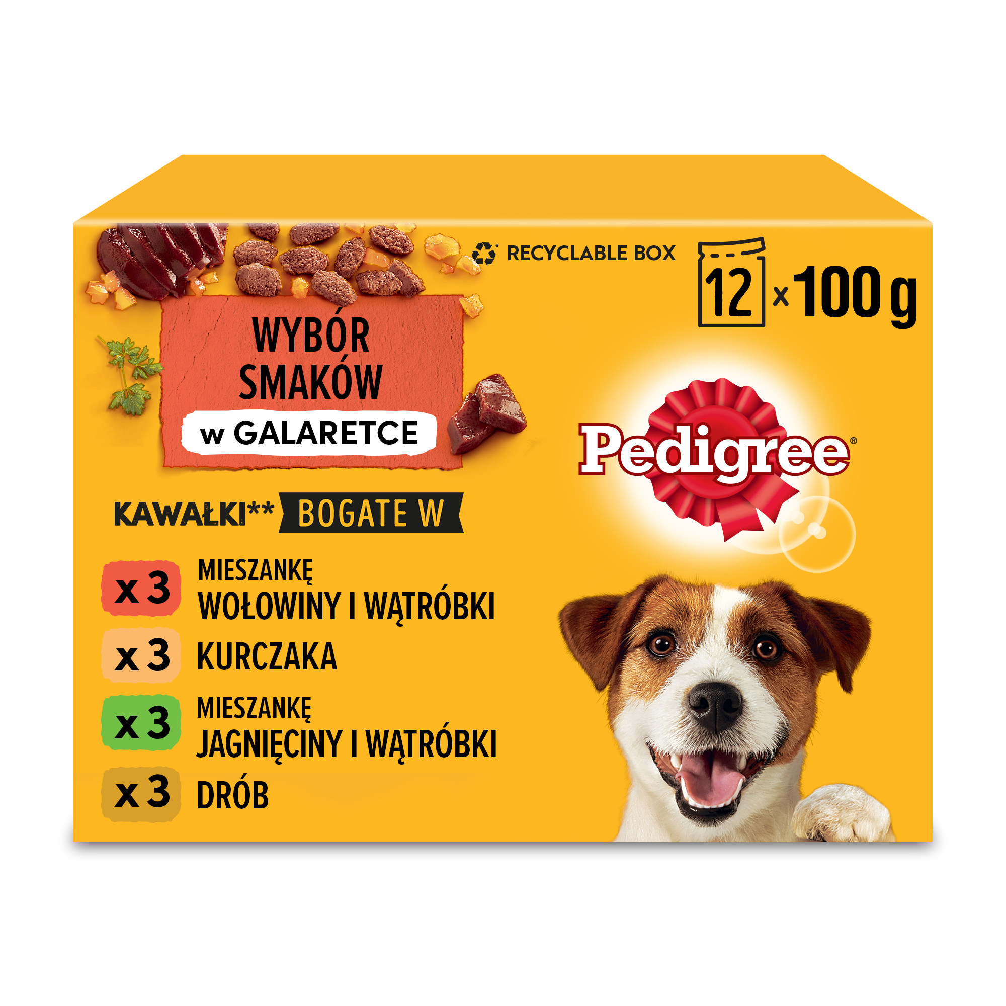 Pedigree Mokra Karma Dla Dorosłych Psów W Galaretce Z Wołowiną, Z Kurczakiem, Z Jagnięciną, Z Drobiem 12x100g- Opis Produktu