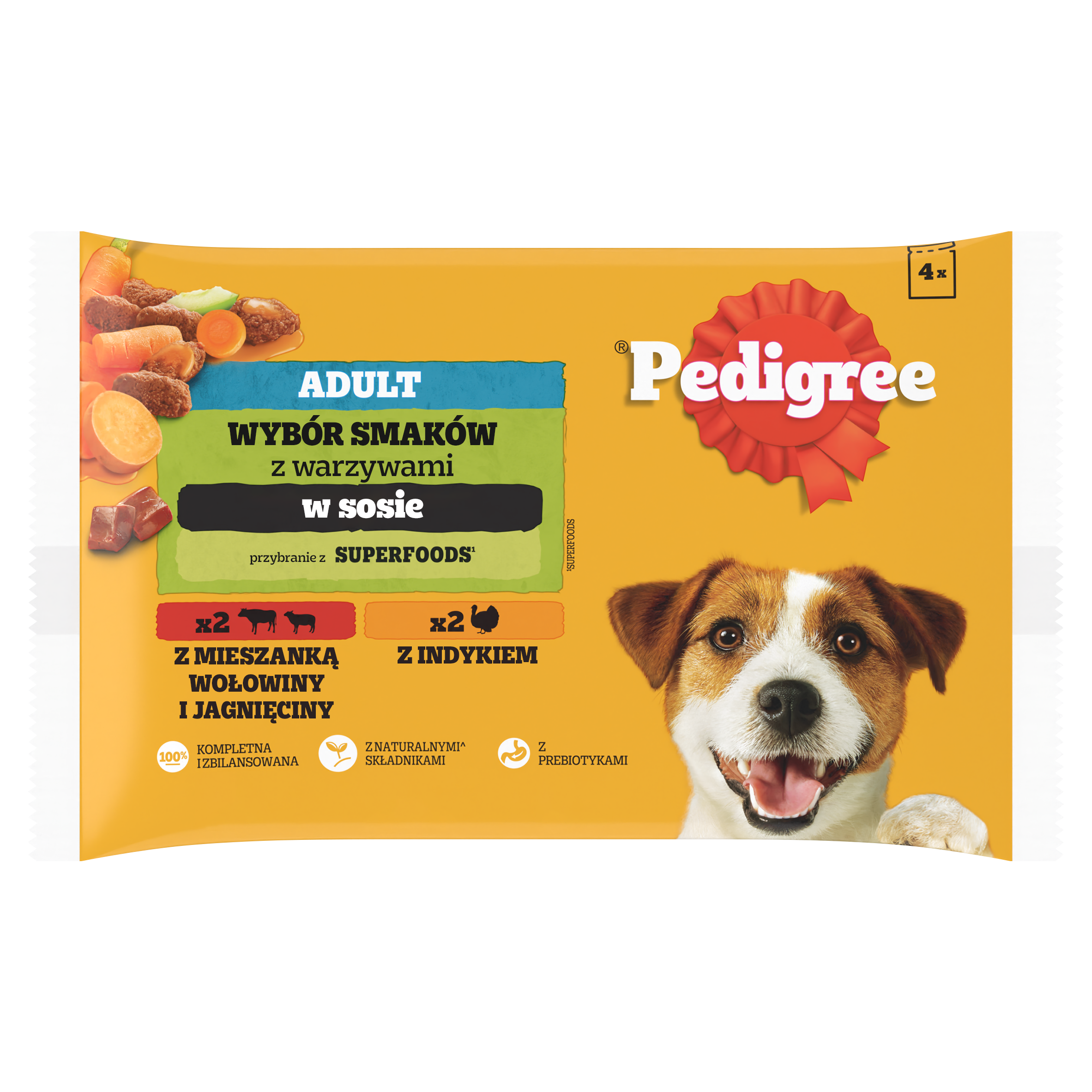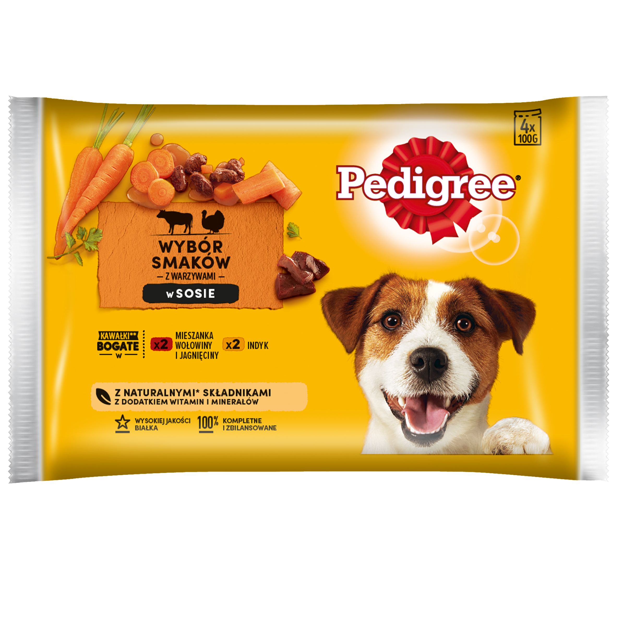 Pedigree Mokra Karma Dla Dorosłych Psów W Sosie (Z Wołowiną I Jagnięciną, Z Indykiem I Marchewką) 4x100g – Opis Produktu