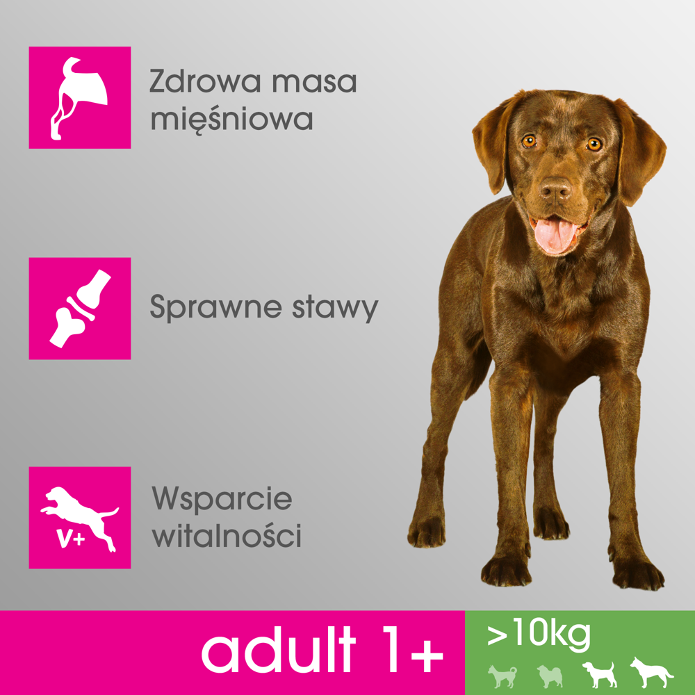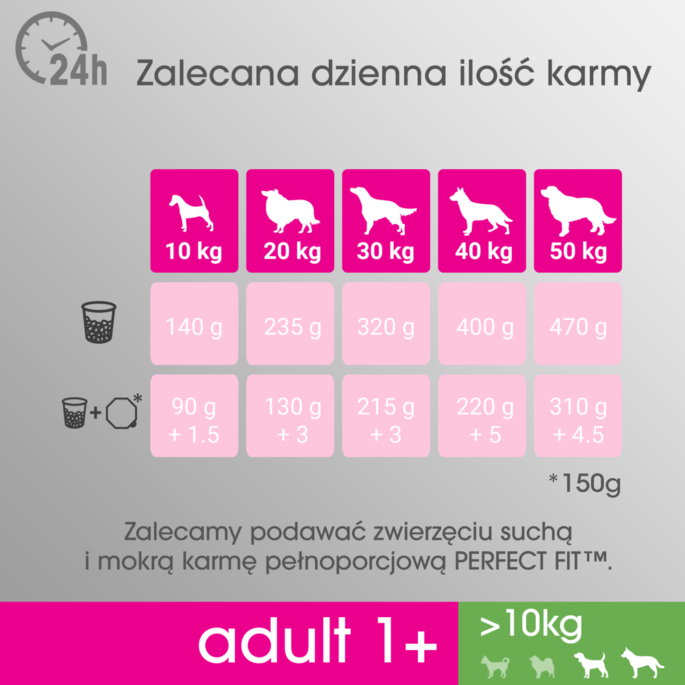 Z recepturą Perfect Fit dostarczasz niezbędne składniki odżywcze i energię we właściwych ilościach – duży pupil zachowa optymalną masę i kondycję ciała.