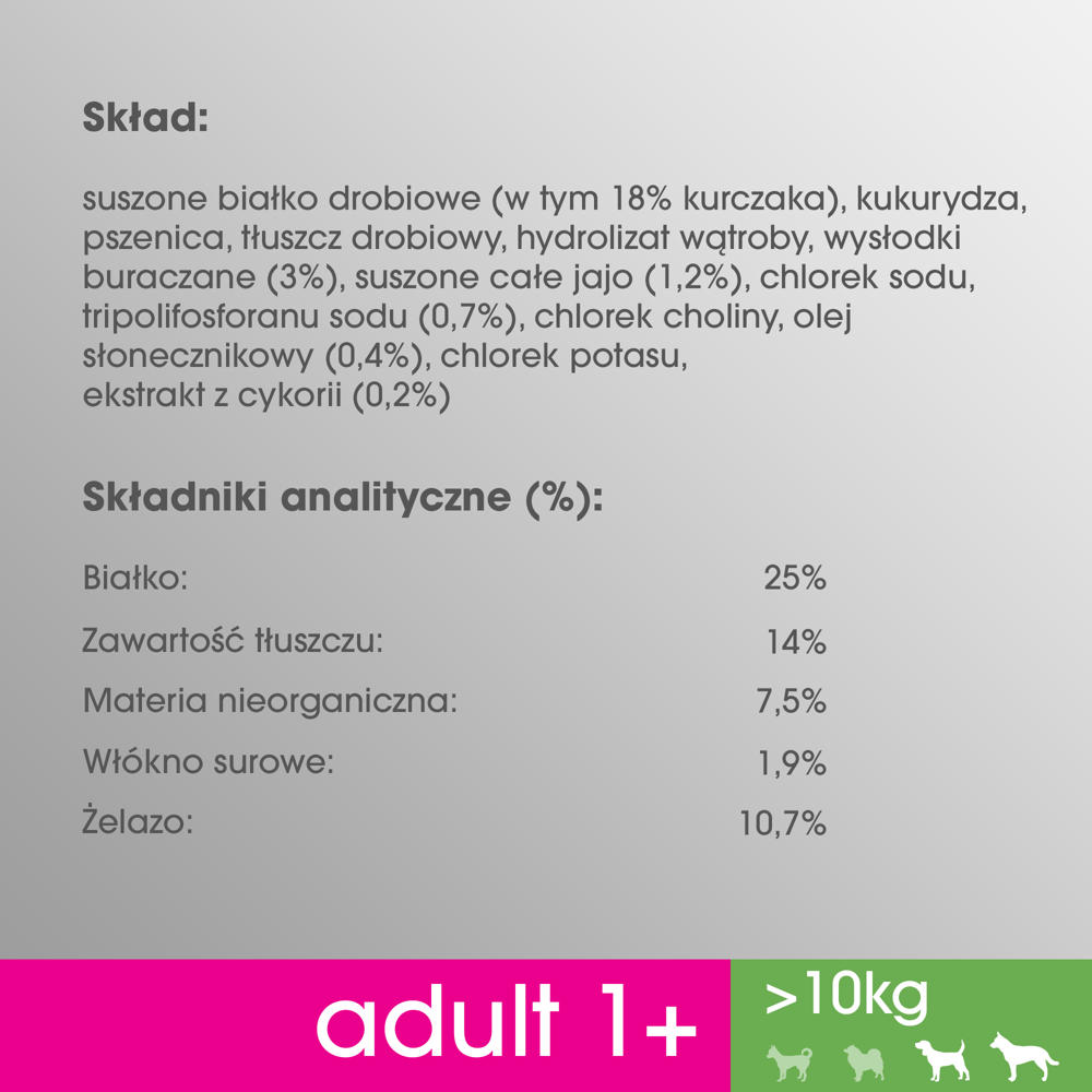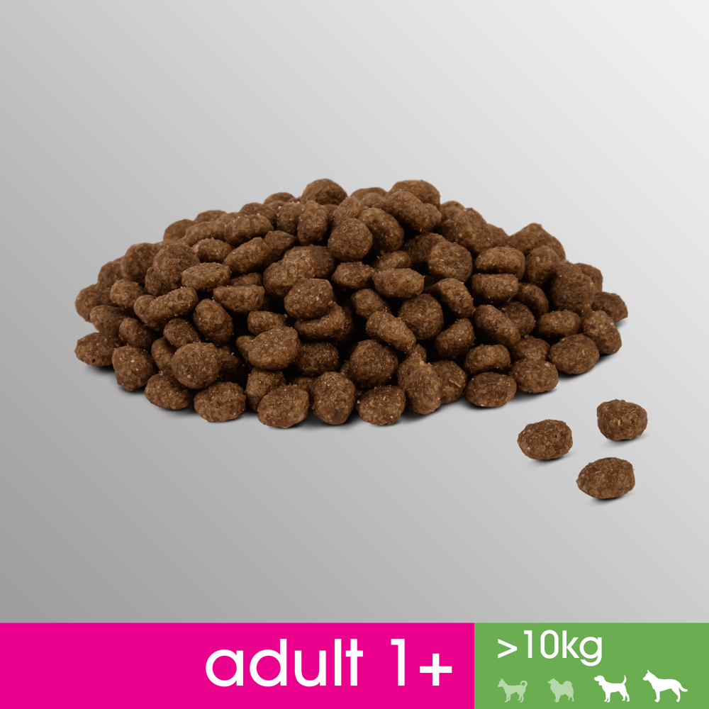 Karma sucha o smaku kurczaka, dla psów powyżej 1 roku życia, ras powyżej 10kg. Opakowanie 825g.