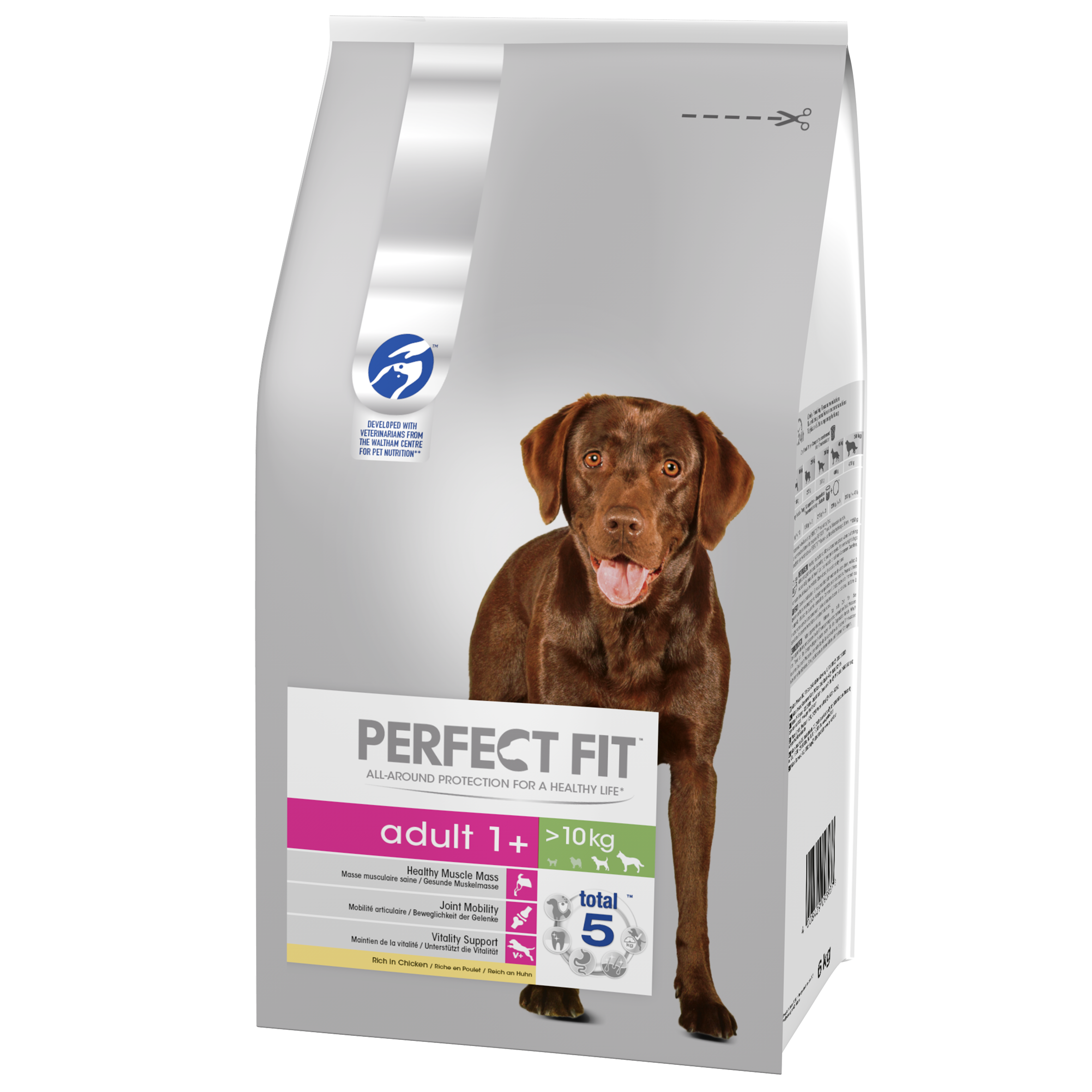 Suche jedzenie dla psa Perfect Fit™ Bogaty w Kurczaka to pełnoporcjowy i smaczny pokarm dla pupila średniej i dużej rasy. W opracowaniu receptury tej karmy dla psa wzięli udział lekarze weterynarii oraz specjaliści ds. żywienia z Instytutu Nauki o Zwierzętach WALTHAM™. Dokonali analizy najczęściej występujących u psów problemów ze zdrowiem, dzięki czemu mogli stworzyć innowacyjną karmę z formułą Total5. Wspiera ona 5 najważniejszych obszarów zdrowia dorosłego pupila, czyli silny układ odpornościowy, zdrowe trawienie, zdrową skórę i sierść, pielęgnację jamy ustnej, a także optymalną kondycję i masę ciała. Odpowiednie żywienie psa dużej rasy przekłada się na jak najlepsze zdrowie, aktywność oraz na rozwój umysłowy pupila. Dostarczaj mu to, czego potrzebuje razem z Perfect Fit™ Bogaty w Kurczaka.