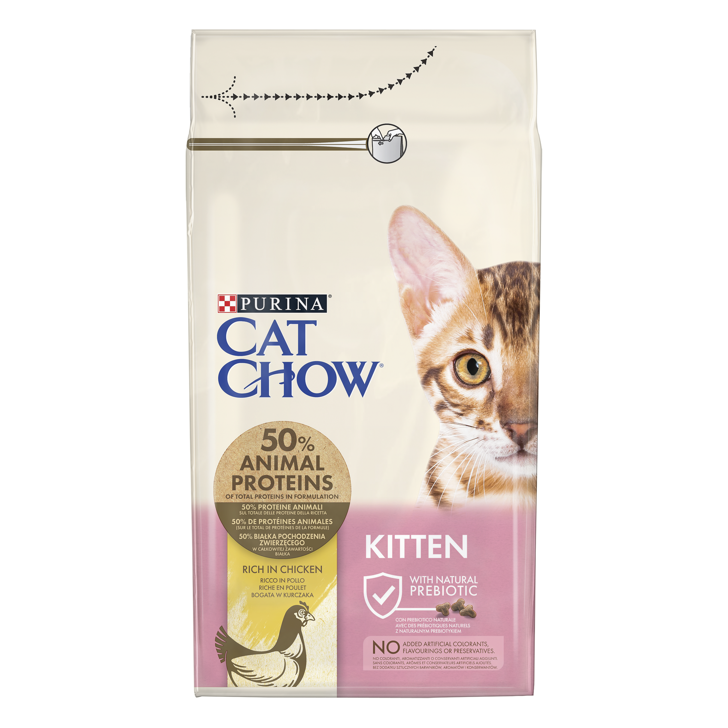 Sucha karma dla kota PURINA Cat Chow Kitten Chicken 1,5 kg to pełnowartościowy posiłek dla kociąt przed ukończeniem roku życia, a także ciężarnych i karmiących kotek. Specjalistyczna receptura charakteryzuje się obecnością kompleksu włókien pokarmowych, które wspomagają procesy trawienne niedojrzałego układu pokarmowego.