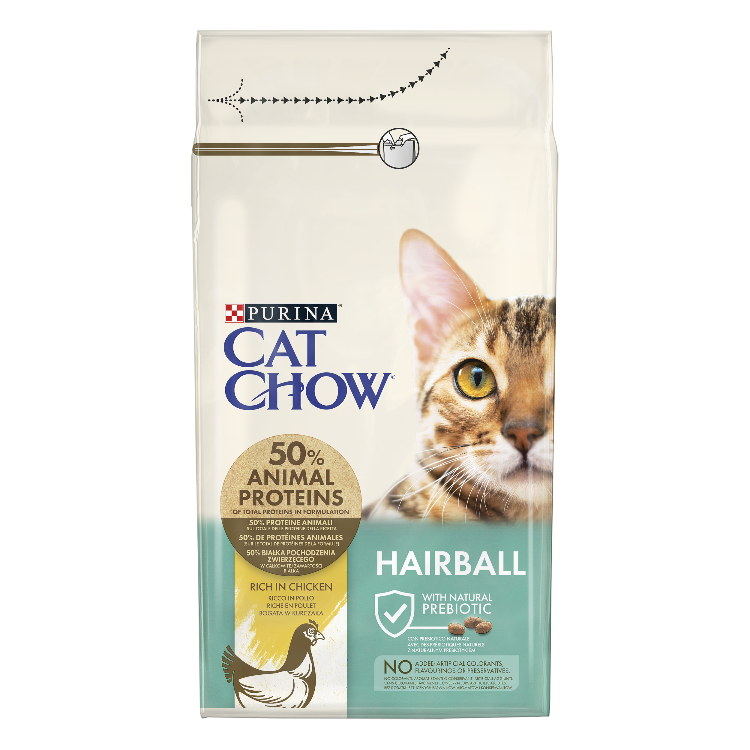 Purina Cat Chow Special Care Hairball Control to pełnoporcjowa, zbilansowania sucha karma dla dorosłych kotów. Bogata w kurczaka formuła pokarmu została opracowana, by pomagać ograniczać tworzenie się kul włosowych w przewodzie pokarmowym kota. Karma jest bogata w kurczaka oraz zawiera wszystkie składniki odżywcze niezbędne kotom do zachowania zdrowia.