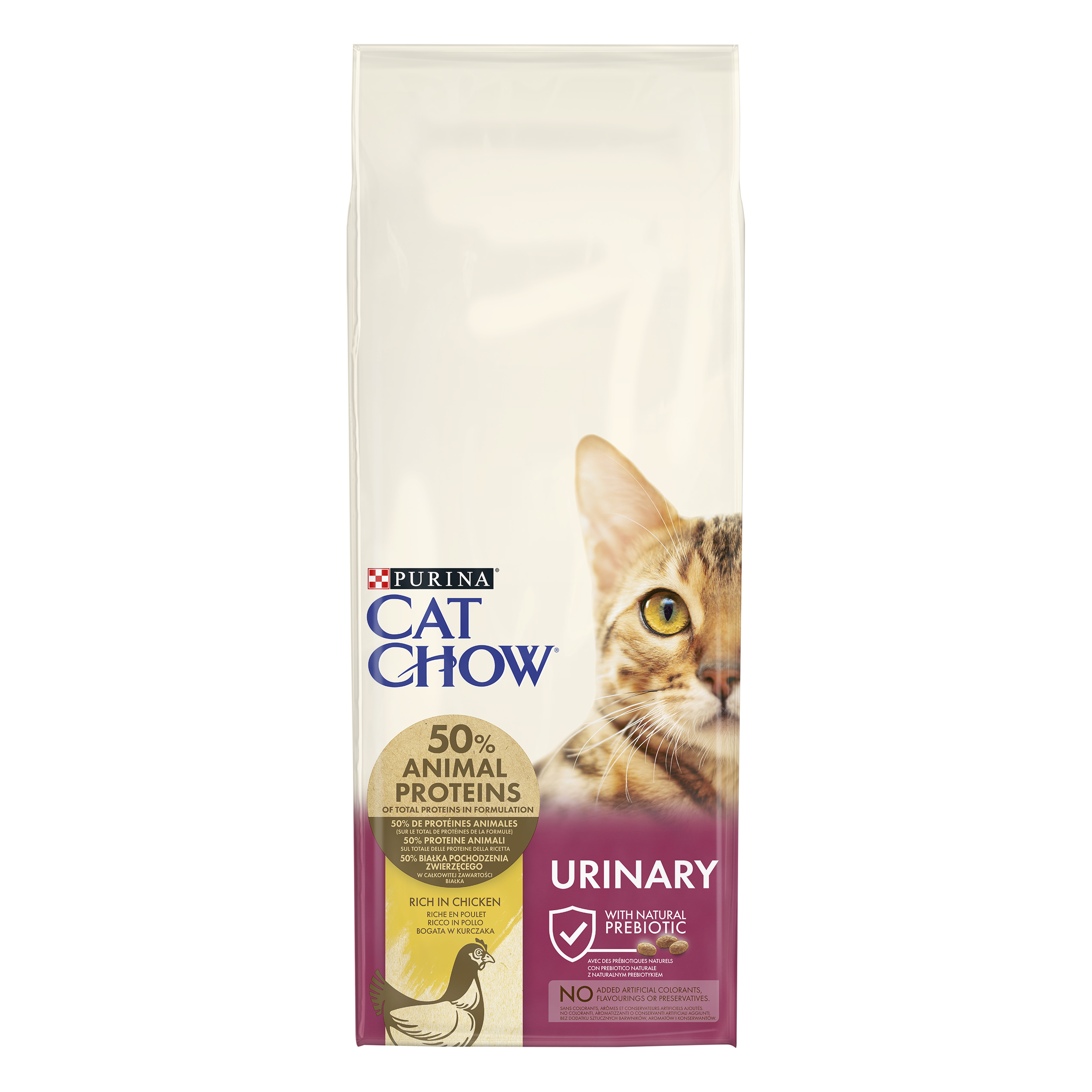 Purina Cat Chow Special Care Urinary Tract Health to pełnoporcjowa i zbilansowania sucha karma dla dorosłych kotów, stworzona, by wspomagać zdrowie układu moczowego. Karma jest bogata w kurczaka oraz zawiera wszystkie składniki odżywcze niezbędne kotu do zachowania zdrowia.