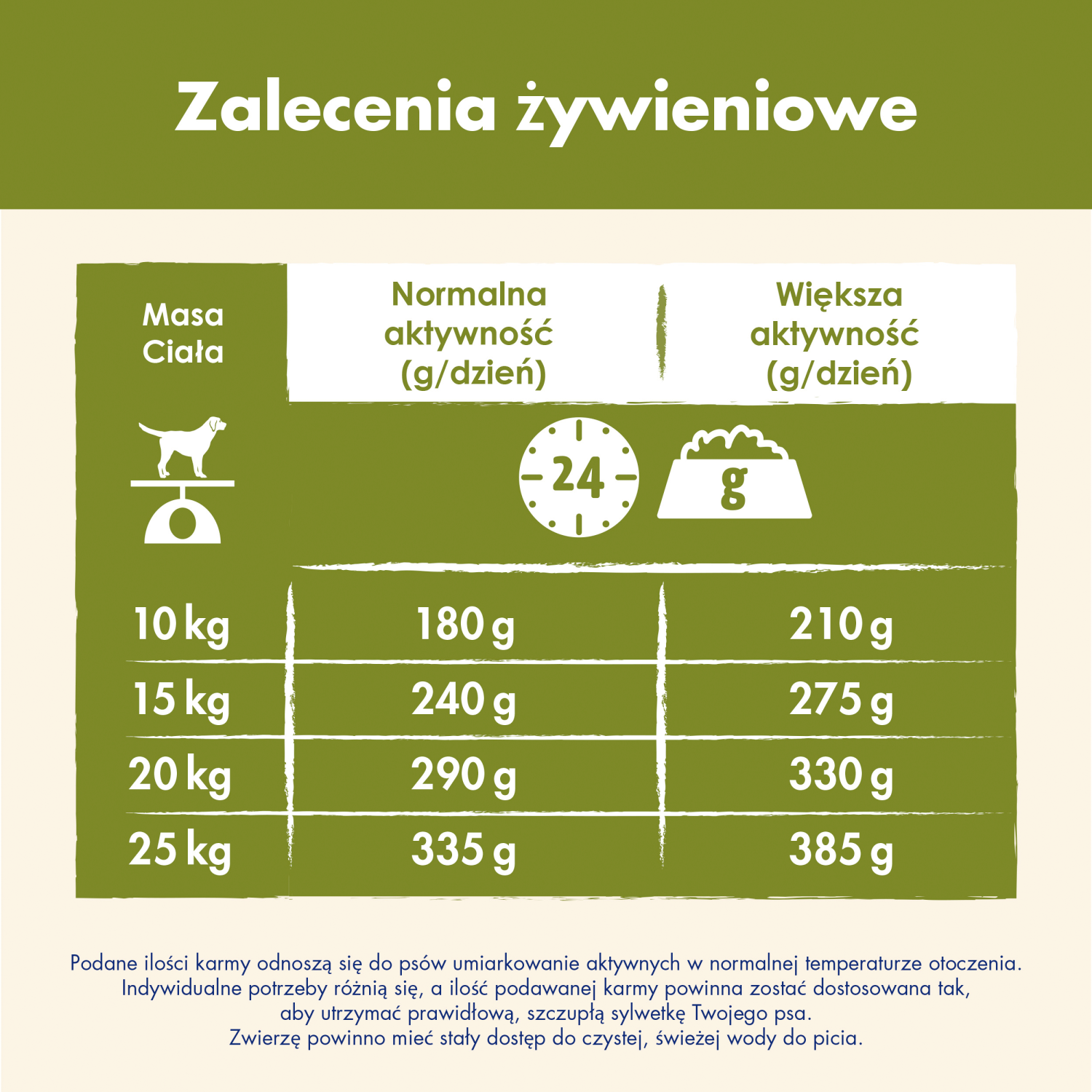 *Odpowiednik 32% nawodnionego mięsa i produktów pochodzenia zwierzęcego, z minimum 4% jagnięciny.