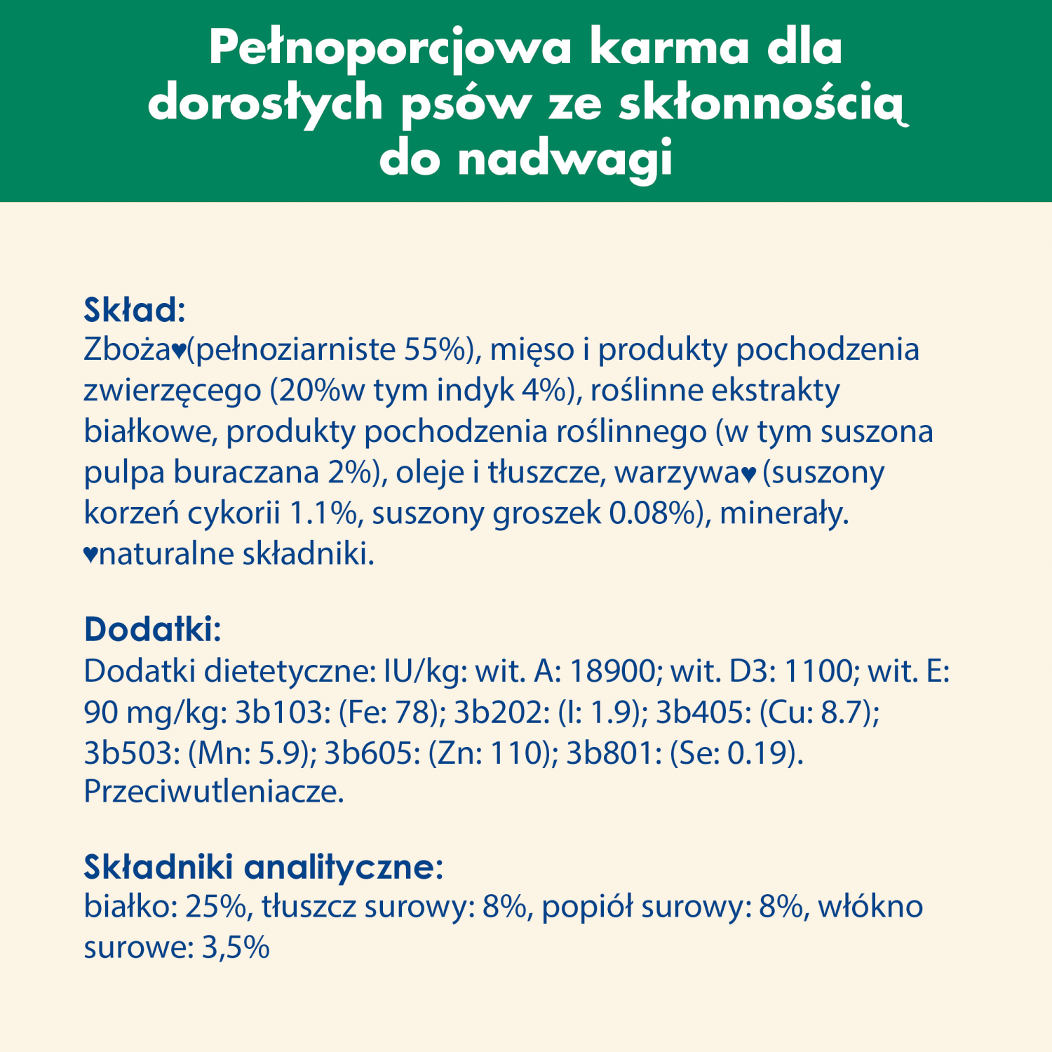 *Odpowiednik 32% nawodnionego mięsa i produktów pochodzenia zwierzęcego, z minimum 4% indyka.