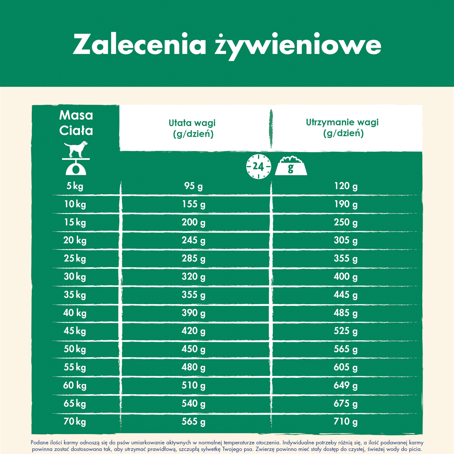 Zapoznaj się z tabelą dotyczącą zalecanej dziennej dawki pokarmowej. Podane ilości to jedynie wskazówki.