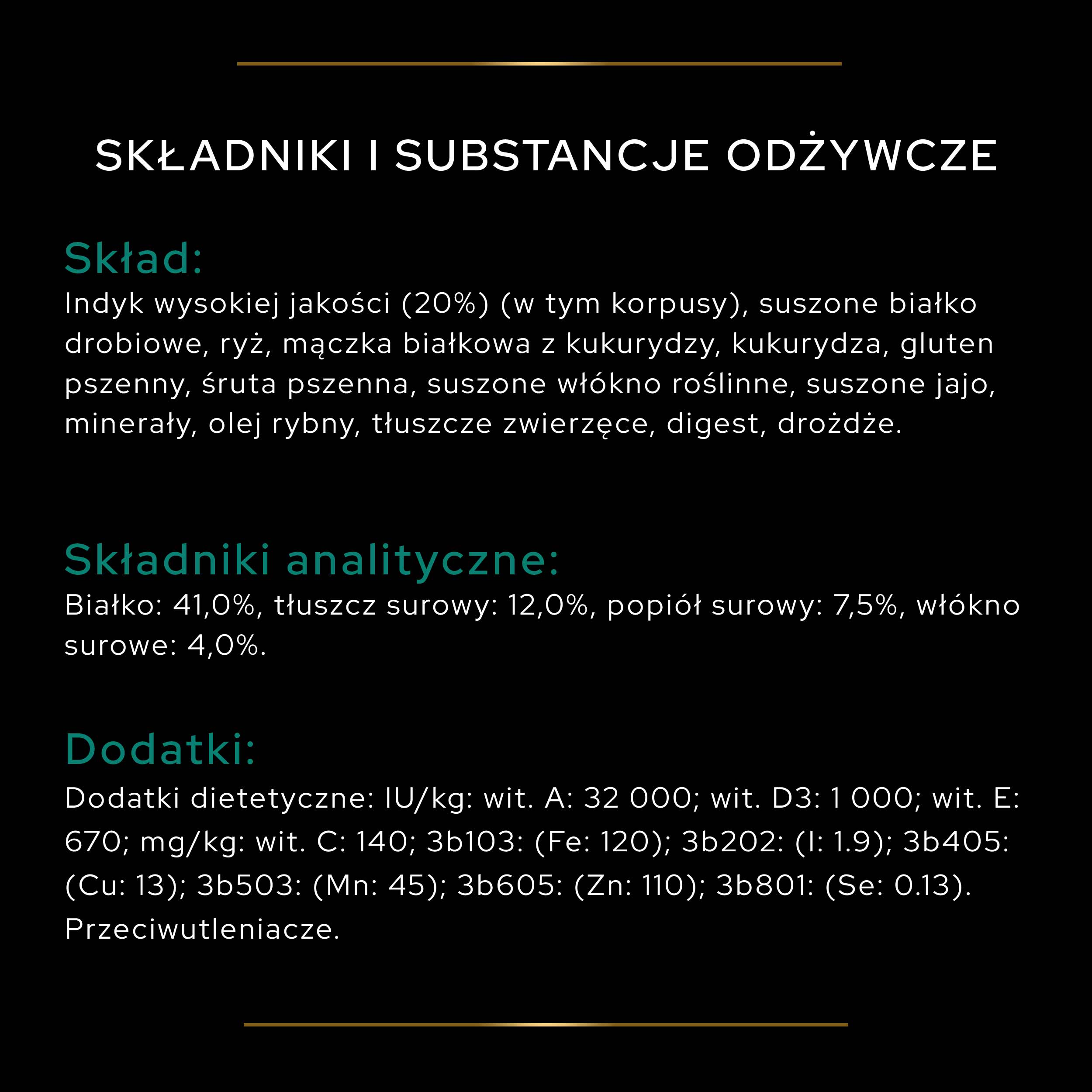 Purina PRO PLAN STERILISED bogata w indyka z unikalną formułą OPTIRENAL to sucha karma dla kotów sterylizowanych, która wspiera zdrowie nerek i zmniejsza ryzyko formowania się kamieni moczowych. PURINA Pro Plan Cat Sterilised to kompletna karma dla kotów powyżej 1 roku życia po kastracji / sterylizacji.