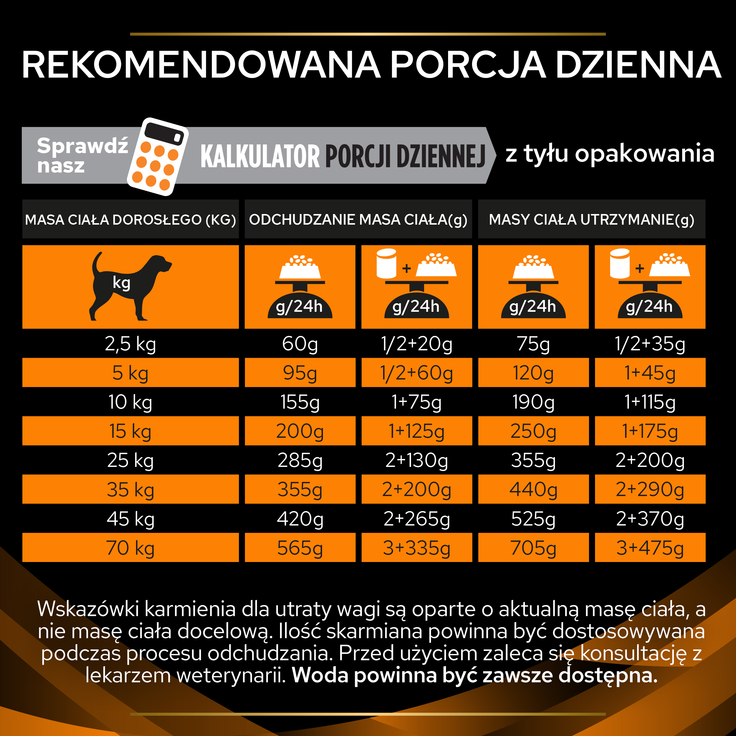 | Waga psa | Porcja dzienna w gramach | Karma mokra + sucha |