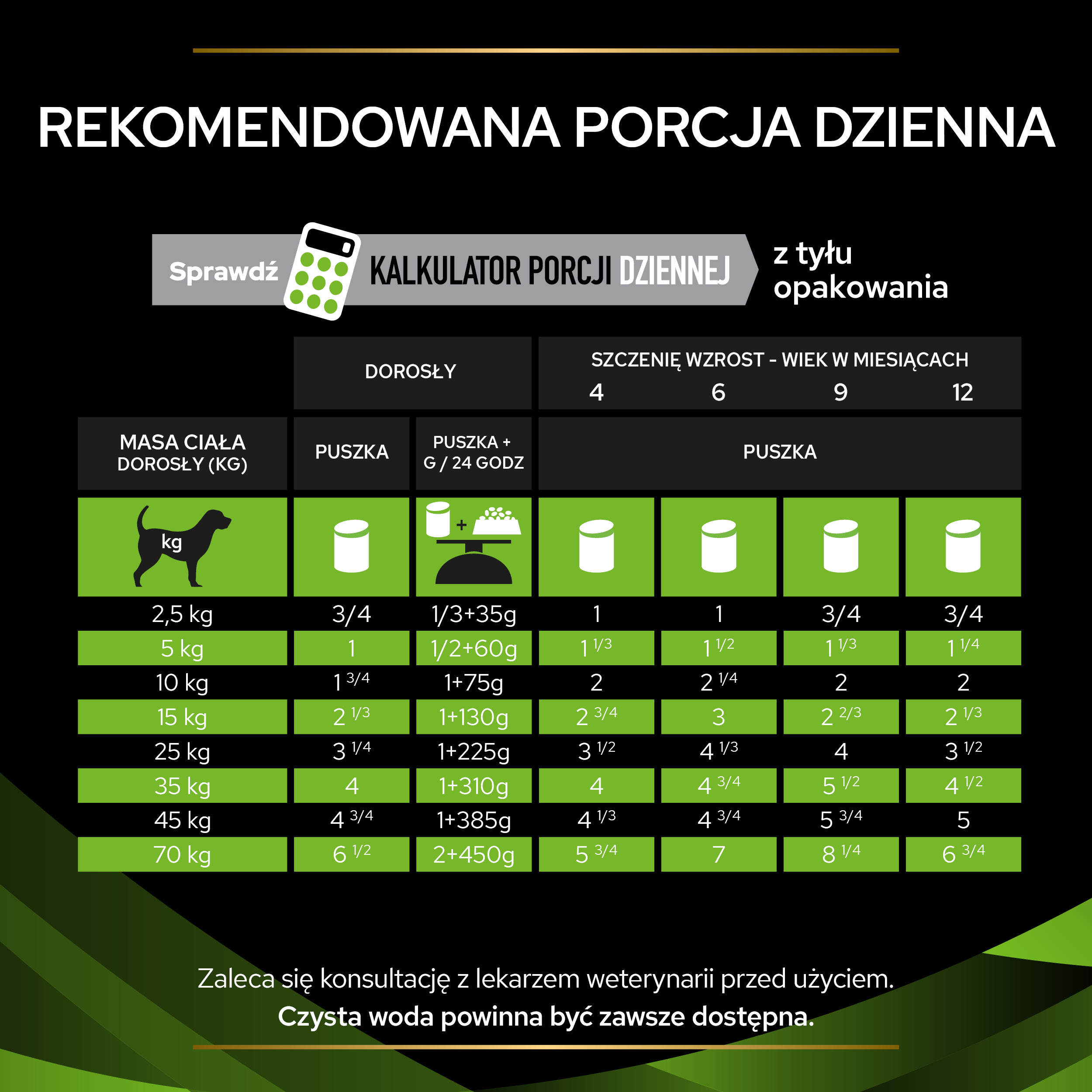 | Waga psa | Dzienna porcja |
