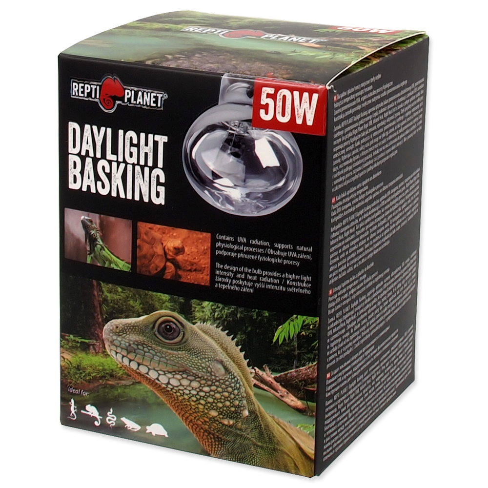 Żarówka REPTI PLANET Daylight Basking zapewnia optymalny balans promieniowania ultrafioletowego UVA, promieniowania świetlnego i promieniowania podczerwonego (ciepła) znakomicie sprawdza się w kombinacji z żarówkami UVB i żarówkami nocnymi.