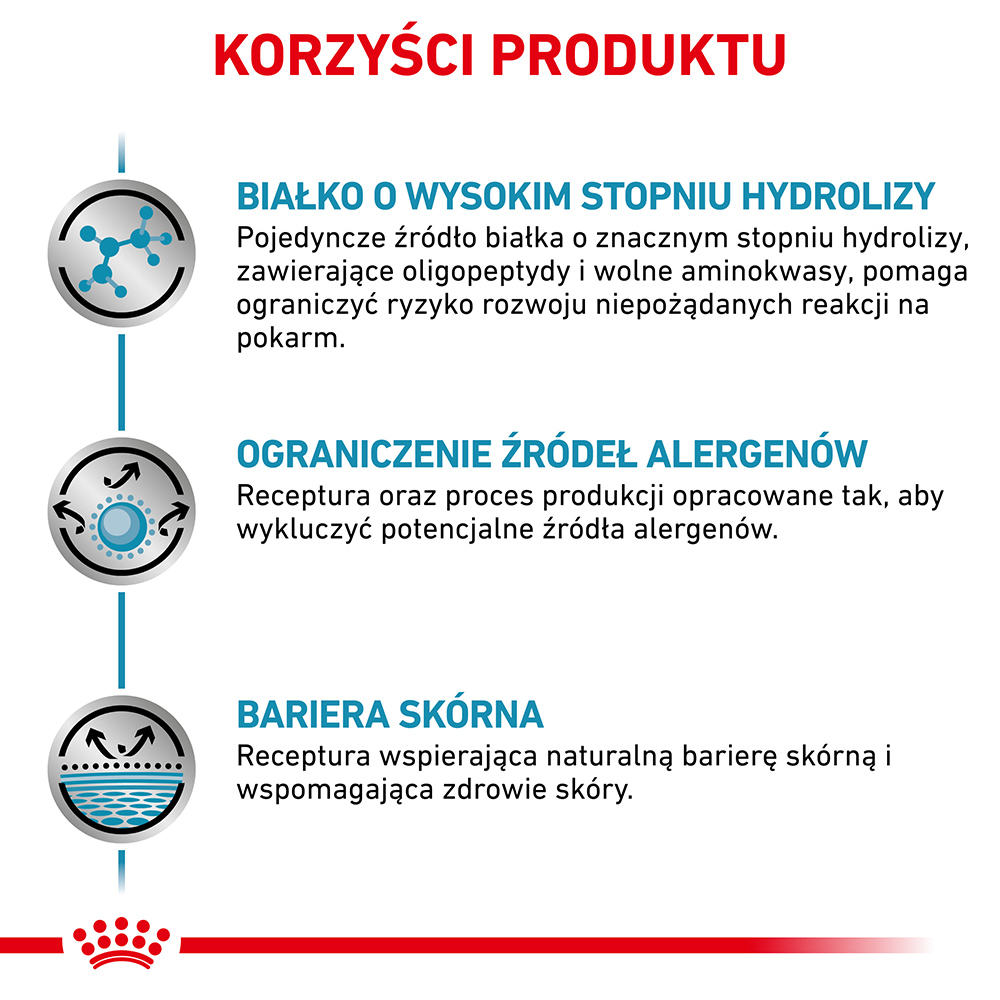 Pełnoporcjowa dietetyczna karma dla dorosłych kotów. Karma opracowana w celu zmniejszenia ryzyka nietolerancji pokarmowej oraz dla zdrowej skóry i sierści. Zawiera wyselekcjonowane źródła białka i węglowodanów.
