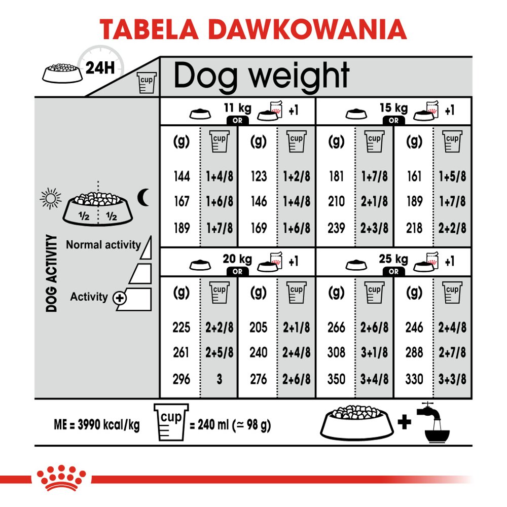 | Waga psa | Niska aktywność | Normalna aktywność | Wysoka aktywność |