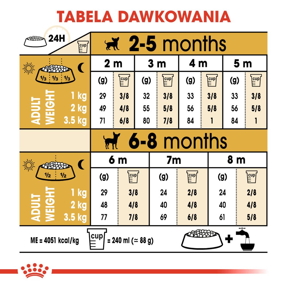Karma ROYAL CANIN Chihuahua Puppy została opracowana specjalnie dla szczeniąt do 8 miesiąca życia, ras małych i miniaturowych dedykowana rasie chihuahua. Wzrost to kluczowy okres w życiu psa – to czas poznawanie nowego otoczenia, domowników czy zwierząt już mieszkających w domu. W tym okresie układ immunologiczny szczenięcia cały czas się rozwija. Ponadto karma ROYAL CANIN Chihuahua Puppy zawiera składniki sprzyjające zdrowiu układu pokarmowego szczenięcia. Sprzyja to zmniejszeniu objętości i redukcji nieprzyjemnego zapachu odchodów.