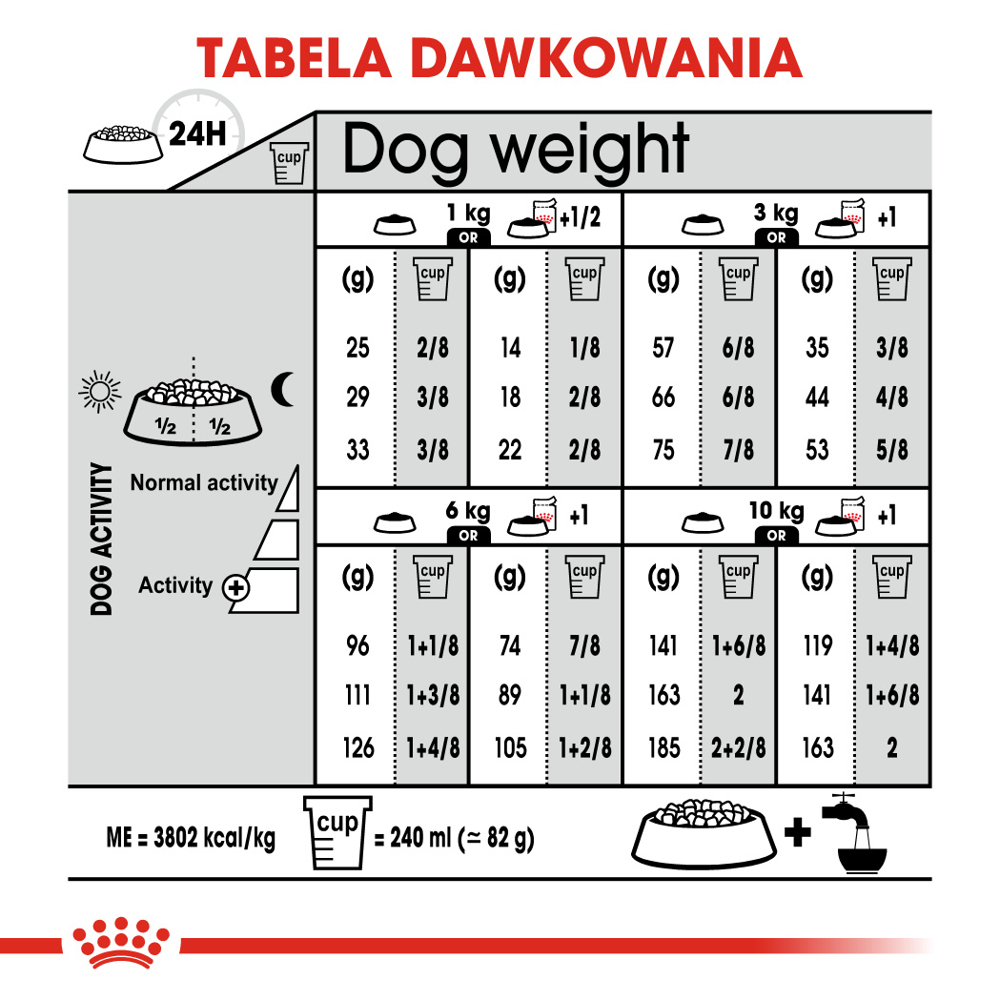 | 3kg | 57g | 35g + 1 saszetka | 66g | 44g + 1 saszetka | 75g | 53g + 1 saszetka |