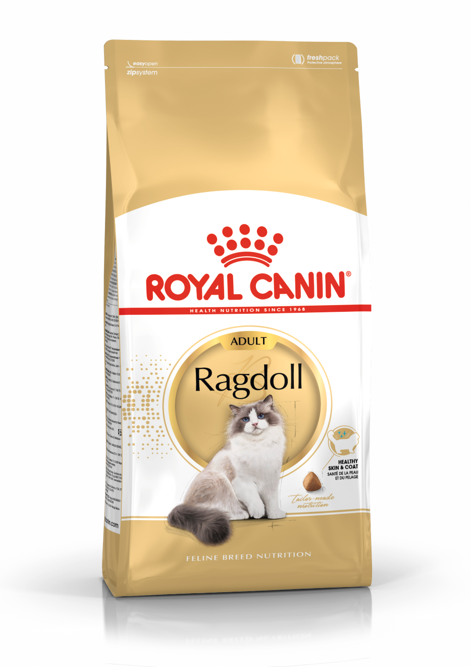 Ragdolle to duże koty, o mocnym kośćcu, dlatego karma ROYAL CANIN Ragdoll Adult wzbogacona została w kwasy tłuszczowe EPA i DHA (których źródłem jest olej rybi), które sprzyjają mocnym kościom i ochronie struktur stawowych. Unikalny krokiet, dostosowany do budowy szczęk kotów rasy ragdoll, ułatwia chwytanie i rozgryzanie karmy, sprzyja higienie jamy ustnej.