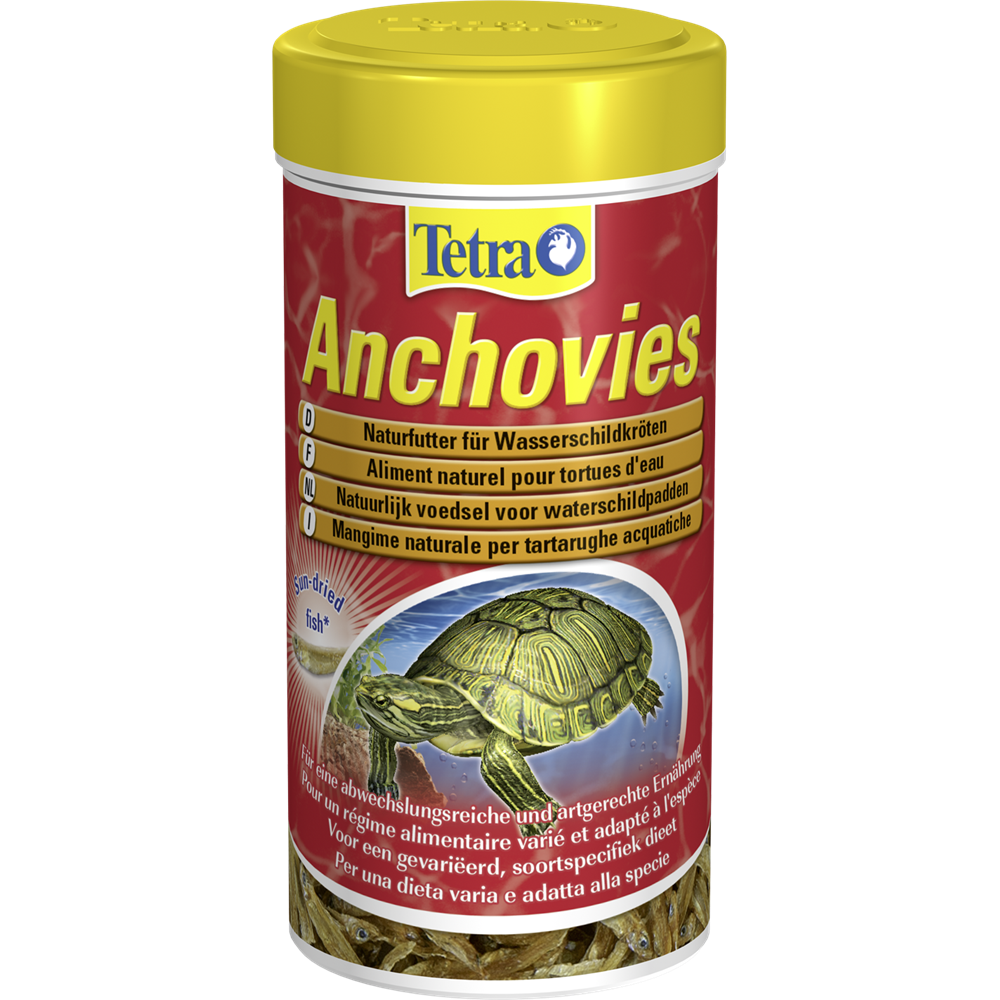Naturalne pożywienie dla żółwi wodnych z całymi rybami (anchois), stanowiące dietę typową dla gatunku. Nieduże, suszone anchois stanową idealną przekąskę dla żółwi wodnych. Wyjątkowo bogate źródło białka wspomagające rozwój mięśni i zdrowy wzrost. Łagodny proces suszenia pozwala zachować witaminy, zapewniając przy tym jakość i smak.