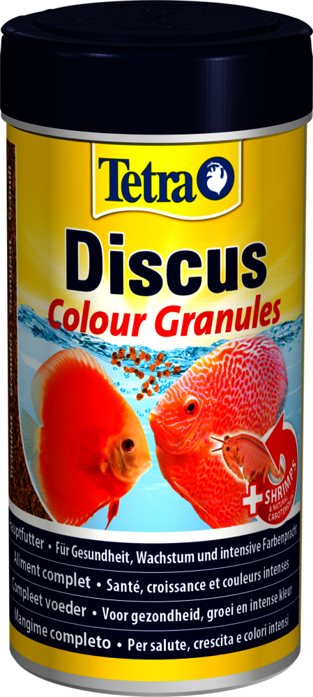 Pokarm dla dyskowców zawierający naturalne substancje wybarwiające. Tetra Discus to pełnowartościowy, podstawowy pokarm płatkowany przeznaczony dla paletek (dyskowców). Granulki bardzo wolno toną w wodzie akwariowej imitując warunki panujące w środowisku naturalnym dyskowców. Zawiera stabilizowaną witaminę C.