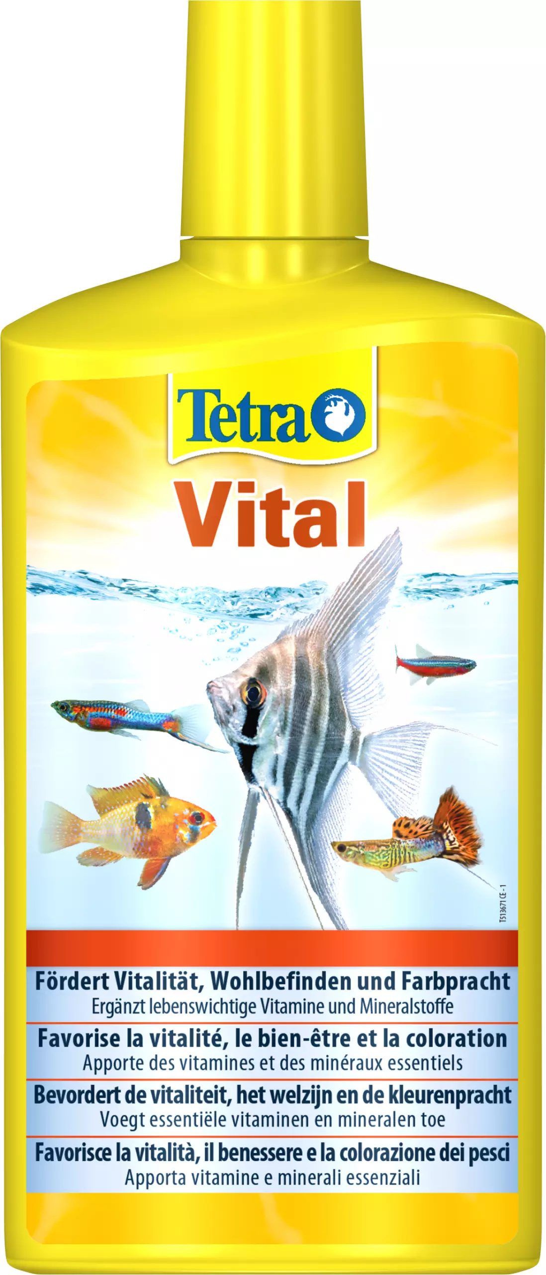 Tetra Vital to preparat wspomagający witalność, dobre samopoczucie i naturalne zabarwienie ryb. Tetra Vital wzbogaca wodę w cenne witaminy, minerały i pierwiastki śladowe pochodzące z naturalnego środowiska ryb, których nie zawiera woda z kranu albo które zostały już wyczerpane w akwarium. Pozwala to stworzyć niemal naturalne środowisko, w którym ryby czują się swobodnie i rozwijają swoje naturalne zabarwienie. Naturalnie aktywne witaminy z grupy B poprawiają witalność i obniżają stres. Magnez poprawia samopoczucie i sprzyja zdrowemu rozwojowi. Pantenol chroni błony śluzowe ryb. Jod pomaga przygotować się rybom do godów i zwiększa szanse na pomyślność tarła. Do stosowania we wszystkich typach akwariów słodkowodnych.