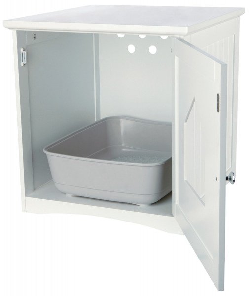 Zabudowanie kuwety jest nie tylko sposobem na jej ukrycie, ale też zahamowanie rozsypywania na podłogę zanieczyszczonego żwirku.