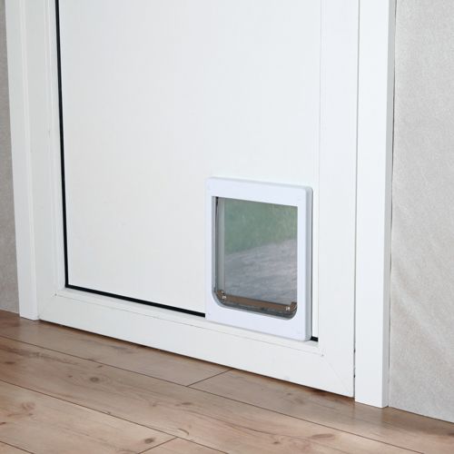Drzwi wahadłowe dla psa z giętką, przezroczystą i cicho pracującą klapą. Rozmiar XS-S.