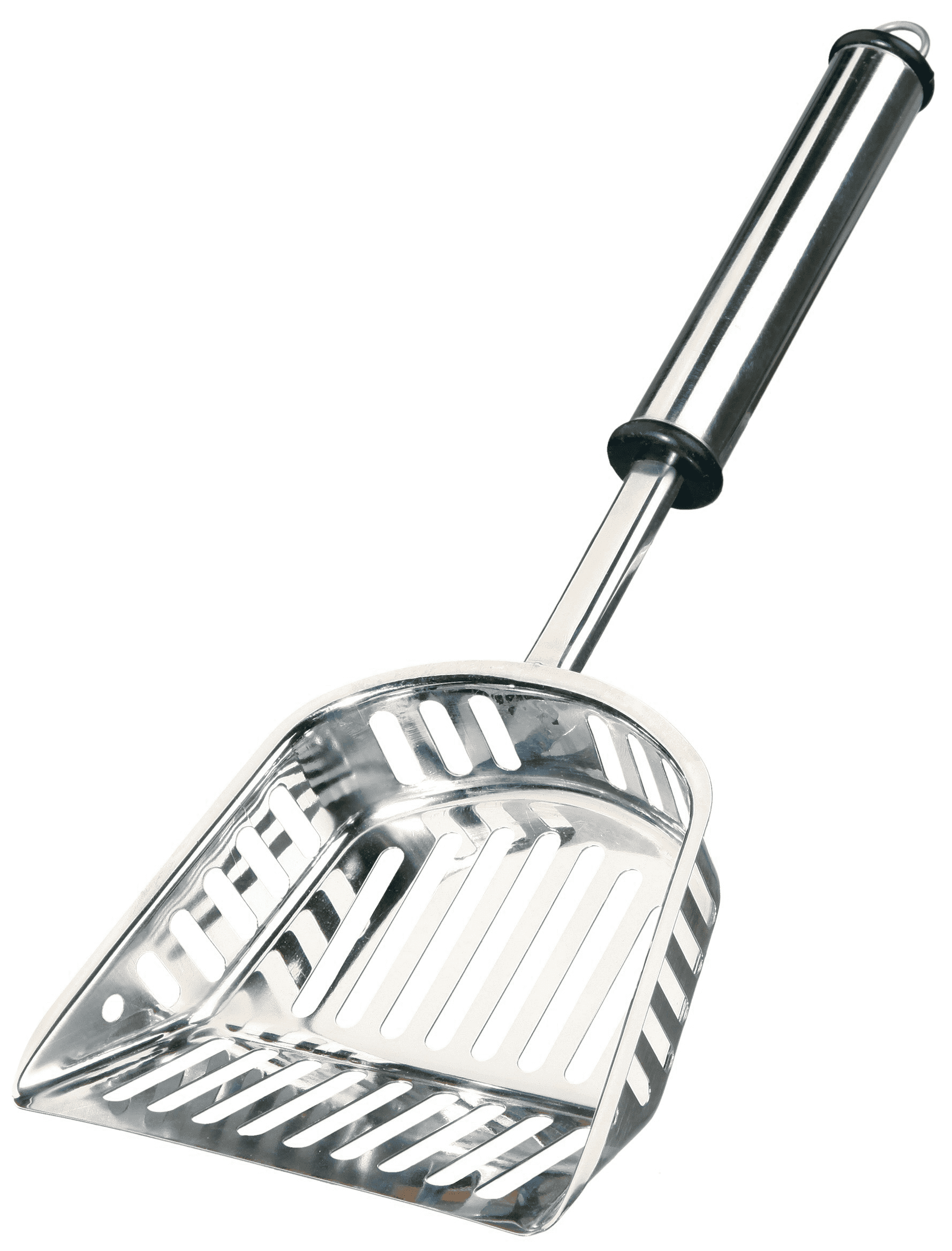 Stalowa łopatka odpowiednia do każdego rodzaju podłoża. Łopatka ze stali nierdzewnej do żwirku z dużą i głęboką szufelką. Przeznaczona do czyszczenia kociej toalety. Odpowiednie otwory ułatwiają wybranie samych nieczystości i odsianie niezużytego żwirku do dalszej eksploatacji. Mocna łopatka ze stali z dużą pojemnością i szerokością nabierania to szybkie i wygodne sprzątanie kociej kuwety.