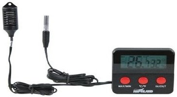 Termometr i higrometr elektroniczny w jednym. Umożliwia pomiar temperatury oraz wilgotności powietrza. Zakres działania od 0°C do 70°C (32°F do 158°F) i 20% do 99% wilgotności. Długie przewody umożliwiają swobodne rozmieszczenie czujników. Wyposażony w czujnik wskazujący dokładną temperaturę oraz wilgotność. Może być przymocowany za pomocą dołączonej przyssawki.