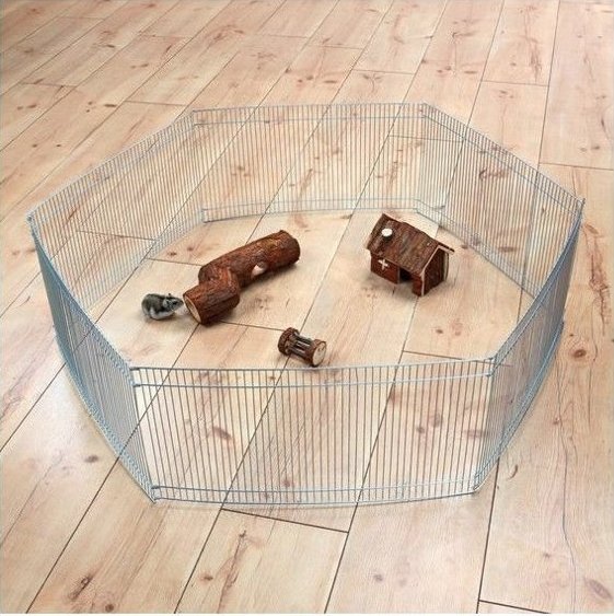 Ocynkowana, metalowa zagroda dla małych gryzoni. Zagroda idealna do użytku zarówno w domu jak i na zewnątrz gdy chcemy gryzonia wypuścić na trawę. Wybieg, dzięki któremu Twój ulubieniec będzie miał zapewnioną dużą przestrzeń do biegania i zabawy, a jednocześnie będzie bezpieczny. Prosty i szybki w rozkładaniu, ścianki tworzą sześciokąt.