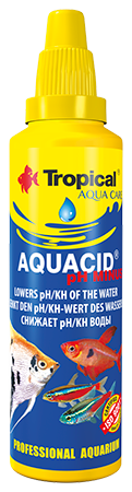 Aquacid pH Minus przeznaczony jest do obniżania odczynu wody w akwariach ogólnych i hodowlanych. Woda o kwaśnym odczynie jest typowa dla wielu biotopów zamieszkiwanych przez popularne ryby akwariowe, np. paletki, skalary, pielęgniczki południowoamerykańskie, ryby kąsaczowate itp. Utrzymanie niskiego pH wody dla wielu gatunków ryb jest nieodzowne, pozwala zachować je w dobrej kondycji i zdrowiu, uwydatnić ich barwy, doprowadzić do tarła i wylęgu ikry. Aquacid pH Minus nie zawiera kwasu fosforowego, który może być przyczyną masowego rozwoju glonów w akwarium. Podczas dozowania preparatu bezpośrednio do akwarium zalecamy stałą kontrolę pH wody przy pomocy testu akwarystycznego – zmiana pH w ciągu doby nie powinna być większa niż 0,2-0,3 pH. Jednak najbezpieczniejszym rozwiązaniem jest przygotowywanie wody przeznaczonej do podmiany poza akwarium i późniejsze stopniowe podmienianie w zbiorniku akwariowym.