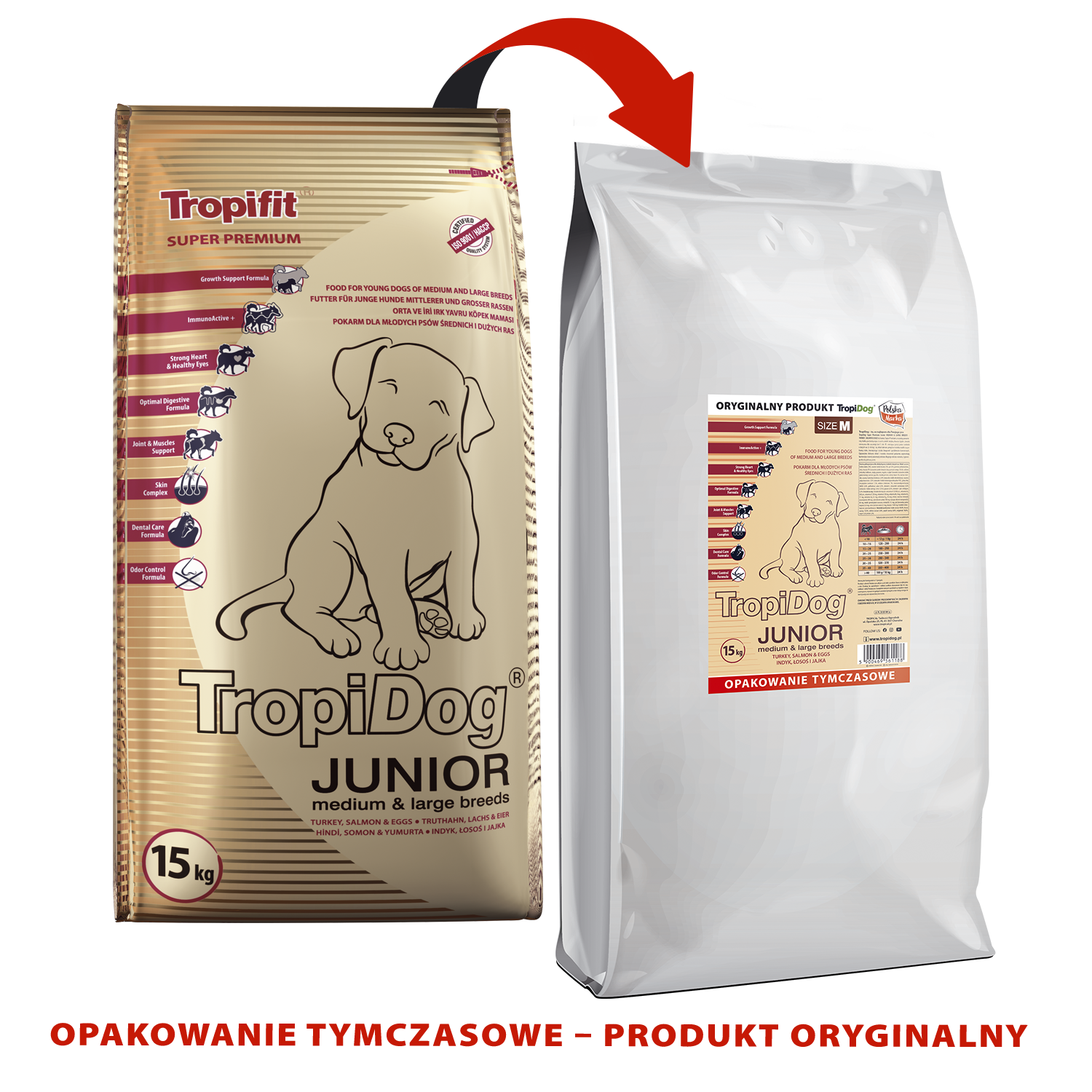 Tropidog Super Premium Junior Medium & Large Breed Z Indykiem, Łososiem I Jajkami 15kg – Opis Produktu