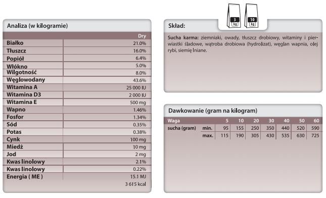 Po opanowaniu reakcji alergicznej, karma Hypoallergenic (Insect) może być podawana przez całe życie jako kompletna karma dietetyczna.
