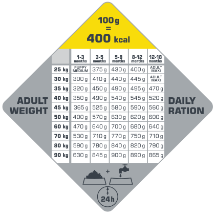 25           puppy medium       375         430          400     adult maxi