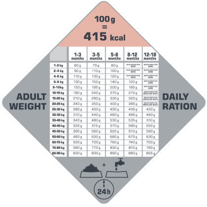 | 20-25kg | 240g | 350g | 400g | 385g | dorosły |