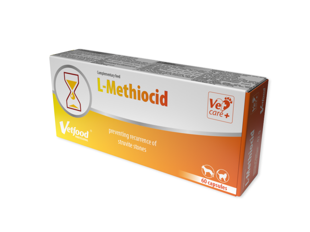 L-Methiocid to produkt wspomagający funkcjonowanie układu moczowego i ograniczający ryzyko wystąpienia kamicy struwitowej. L-METHIOCID zawiera L-metioninę – aminokwas siarkowy, który zakwasza mocz i żółć przez co jest w stanie wykazać korzystne działanie w przypadku zapobiegania wytrącaniu się złogów w drogach moczowych, ograniczając tym samym ryzyko ich zakażenia. Działa odtruwająco, lipotropowo, żółciotwórczo, żółciopędnie oraz moczopędnie, co sprzyja wypłukiwaniu struwitów.