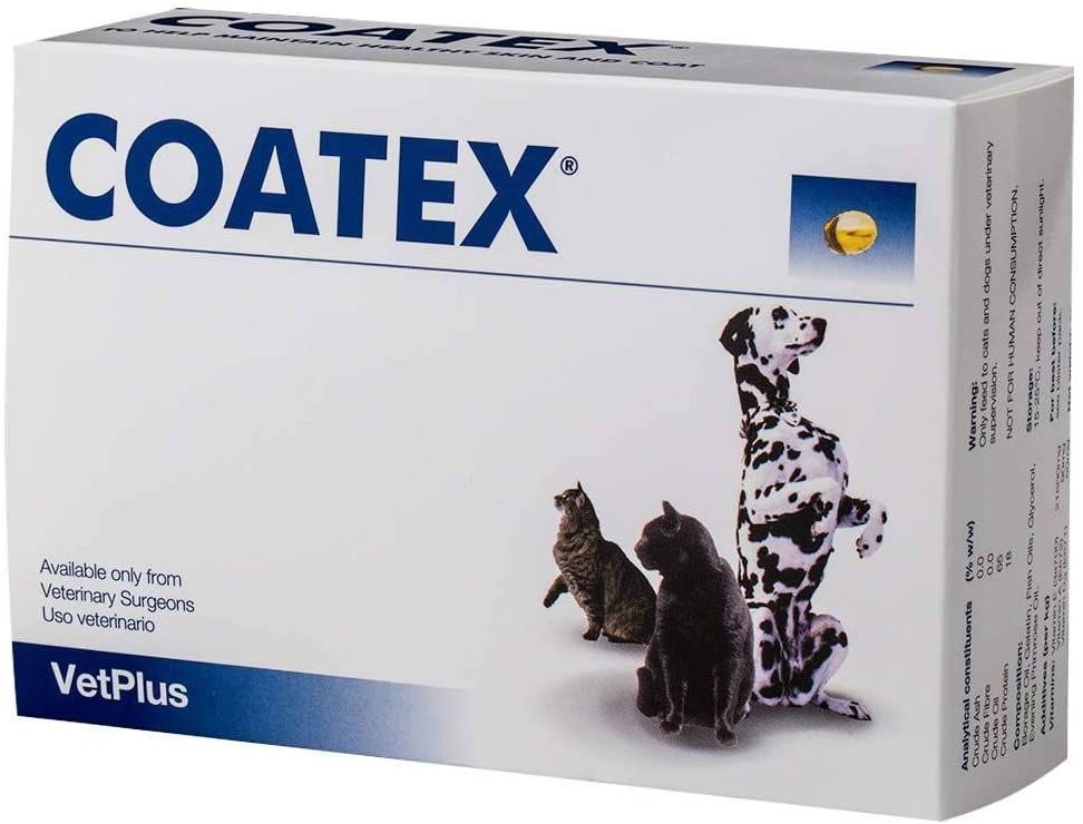 COATEX – to mieszanina oleju z ogórecznika, oleju z ryb, witaminy E, witaminy A oraz witaminy D3, która efektywnie wspiera leczenie zaburzeń skóry i sierści u psów i kotów. Preparat COATEX zapewnia prawidłowy rozwój skóry i sierści u zwierząt.