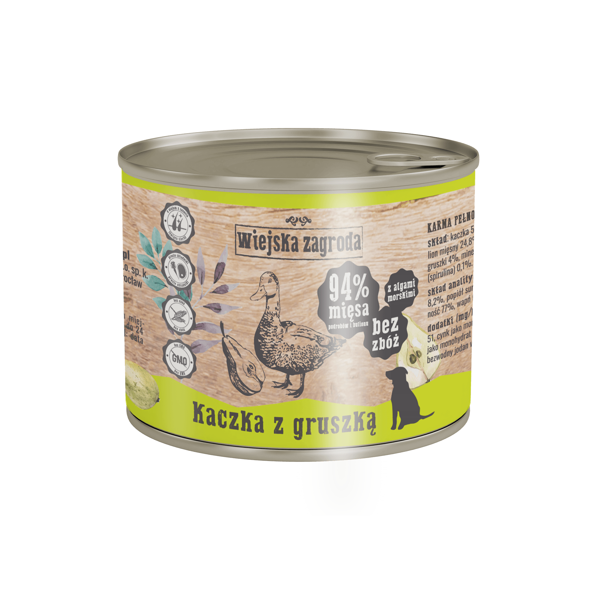 - 50% kaczka (mięso, szyjki, wątróbka, serca)