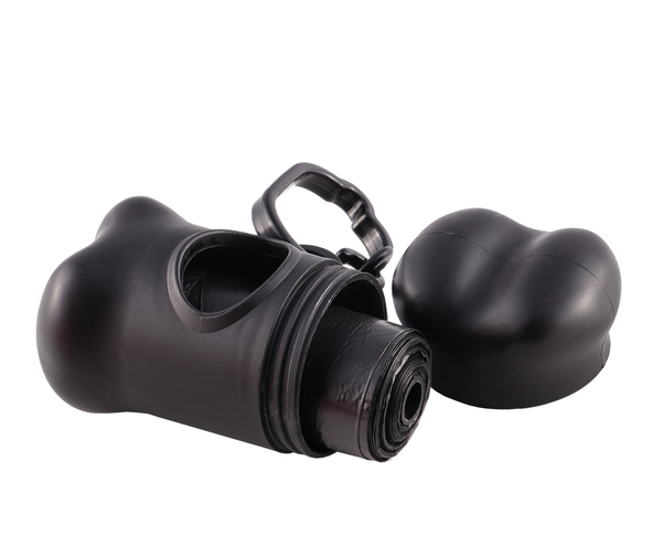 Woreczki na odchody w zestawie z dozownikiem w kształcie kości.
