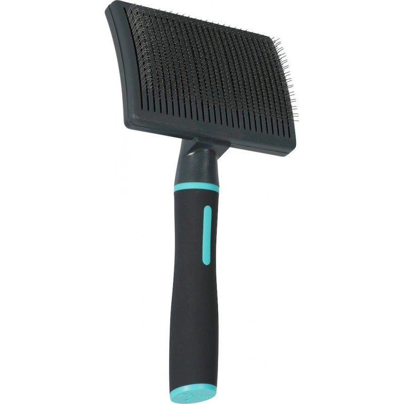 Zaprojektowaliśmy nowy uchwyt, który zapewnia większą wygodę użytkowania i idealnie leży w dłoni, dzięki ergonomicznemu kształtowi, miękkiemu i przyjemnemu w dotyku wykończeniu SOFT TOUCH oraz powłoce z gumy termoplastycznej i miękkim wypustkom. Dodatkowo, niezależnie od rozmiaru produktu, uchwyt ma jeden rozmiar, który idealnie leży w dłoni. Elastyczne, zakrzywione igły umożliwiają delikatne szczotkowanie podszerstka. Dzięki wysuwanym igłom szczotka jest wygodna w użyciu i łatwa do utrzymania w czystości. Rozczesuje, usuwa martwy podszerstek i wygładza sierść.