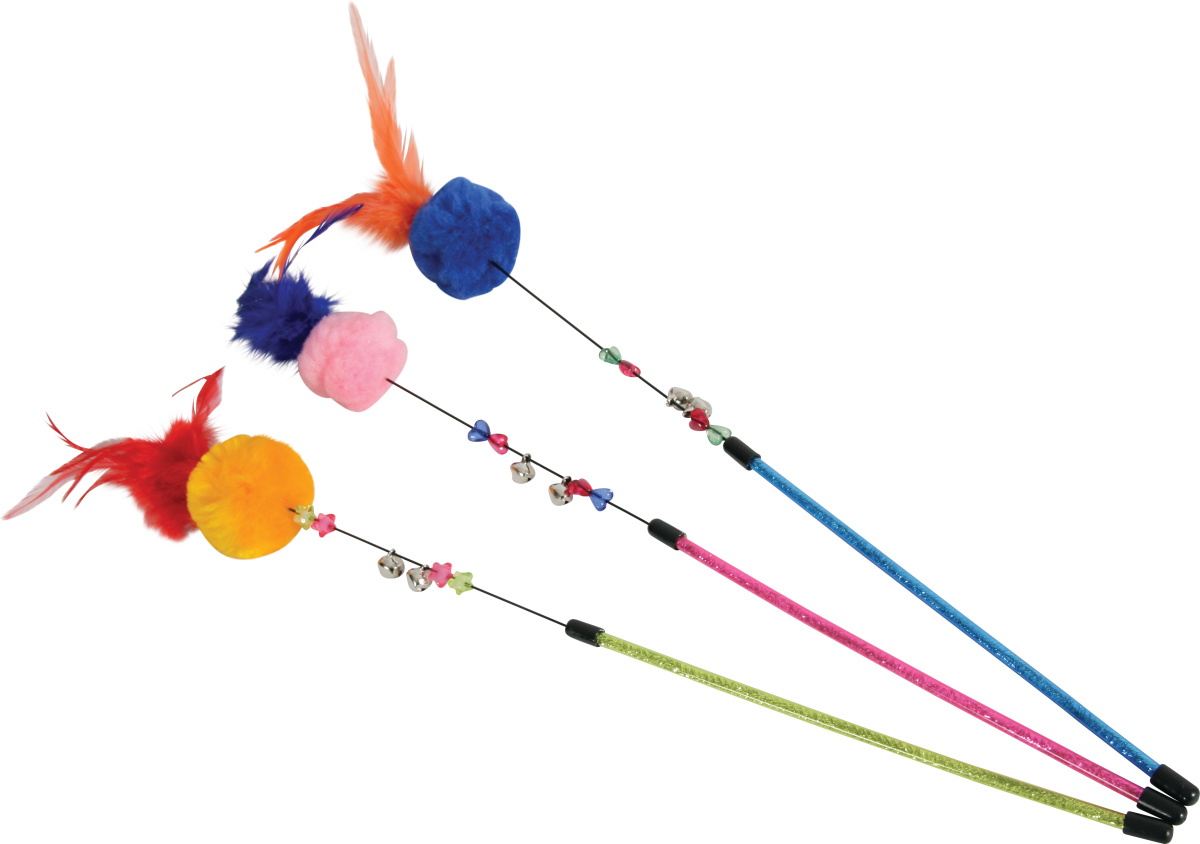 Zabawka wędka została stworzona specjalnie dla pobudzenia instynktów łownych kota. Wędka zapewni wielogodzinną zabawę. Koty uwielbiają za nią biegać, skakać i próbować łapać puszysty pomponek z piórkiem. Dodatkowo zabawka posiada dwa małe dzwoneczki, które jeszcze bardziej zachęcają kota do polowania na pompon z piórkiem. Wspólna zabawa dostarcza wielu emocji i radości.
